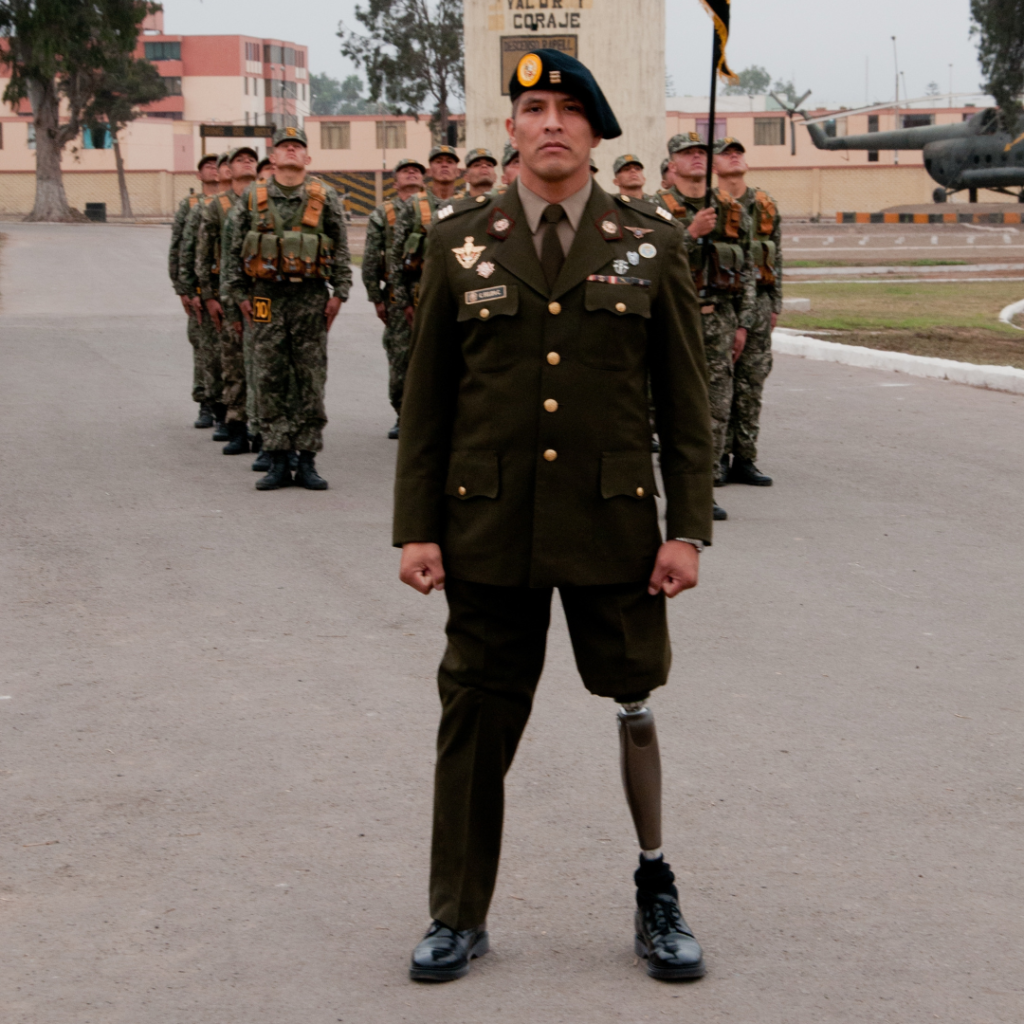 Carlos es oficial del Ejército Peruano y Comando de Fuerzas Especiales. En 2010, perdió una pierna en una emboscada terrorista, convirtiéndose en un ejemplo de valentía y resiliencia.